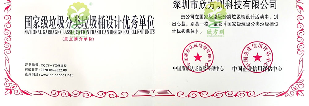 欣方圳擁有數(shù)十款國家知識產(chǎn)權(quán)垃圾桶專利證書,專利產(chǎn)品囊括不銹鋼、鋼板、玻璃鋼等市場主流垃圾桶應用材質(zhì),專業(yè)生產(chǎn)廠家給客戶更多選擇空間。